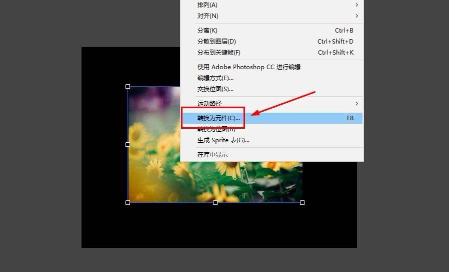5、選擇影片剪輯元件,因為在FLASH中,只有文本、影片剪輯、按鈕元件才有濾鏡的使用