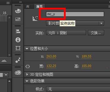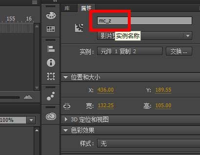 6、分別設置這三個影片剪輯的實例名為mc_x,mc_y,mc_z