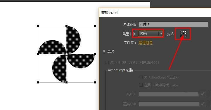 flash怎么制作箭頭圍繞中心點不停旋轉的動畫效果?
