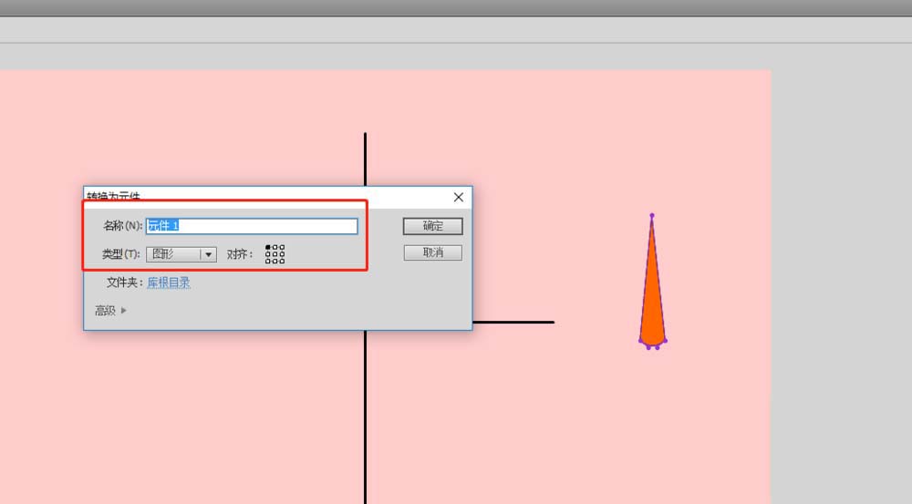 5、拖動鼠標框選選中箭頭圖形,按F8快捷鍵執行轉換為元件命令,將這個箭頭變成一個圖形元件。