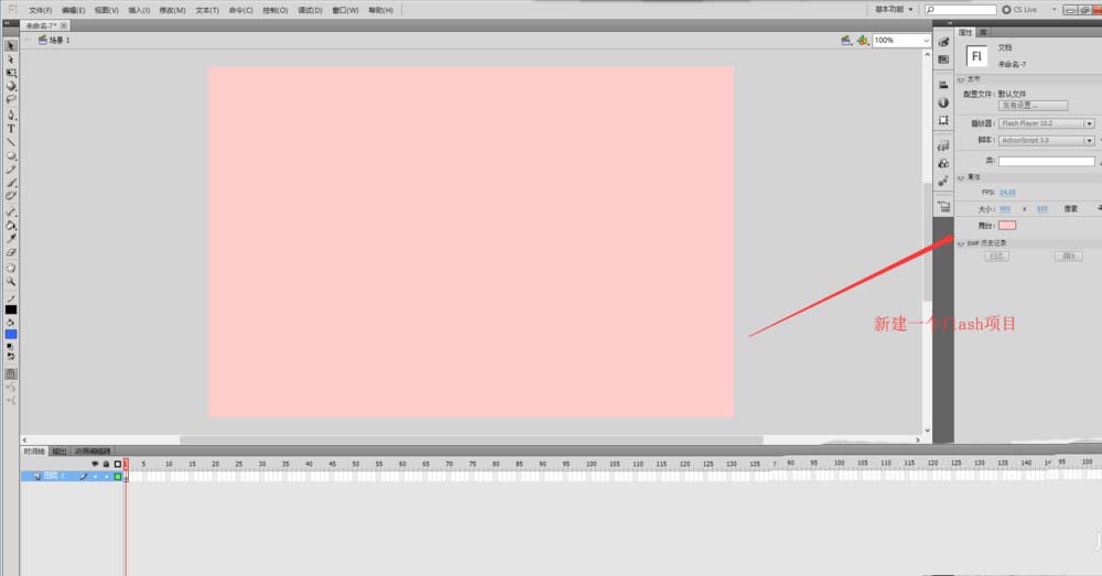 1、打開flash軟件并創建一個項目,在屬性面板中設置好有關這個flash項目的必要參數屬性。