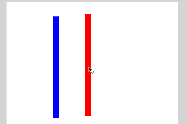 7、兩條線粗細相同、顏色不同時,如下圖,把紅線移動到藍線上時,重合部分會顯藍色(重合部分顯示的是不主動的一方顏色)。