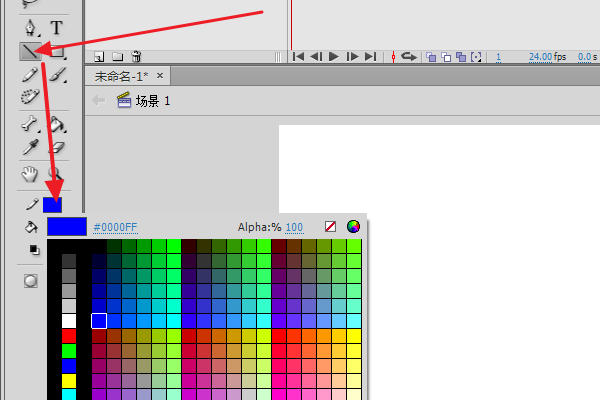 1、如圖所示,打開Flash CS6之后,點擊線條工具,然后選擇筆觸顏色。