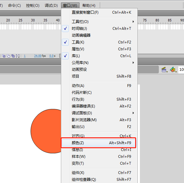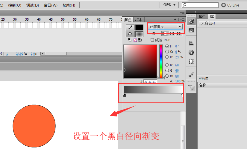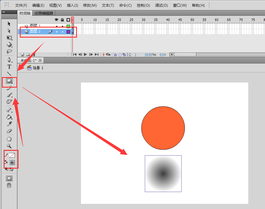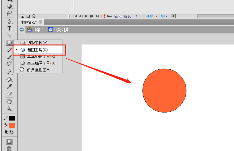 1、先在flash中繪制一個基本圖形,這里繪制的就是一個常見的正圓圖形。