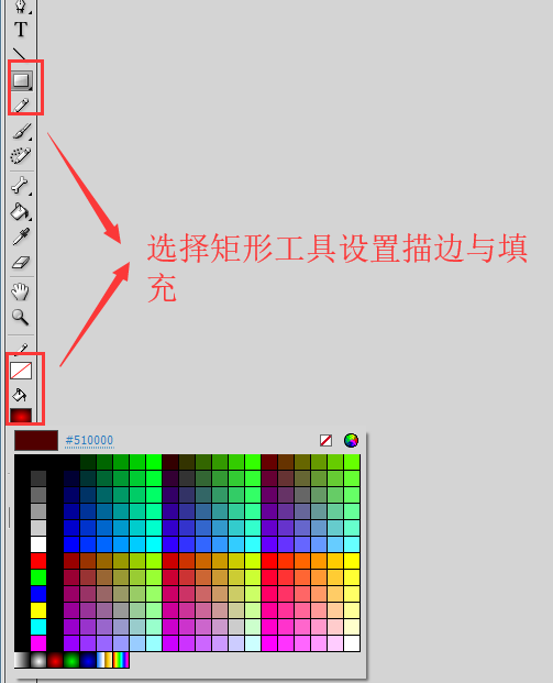 2、選擇矩形工具,分別設置矩形工具的筆觸(描邊)與填充的顏色。