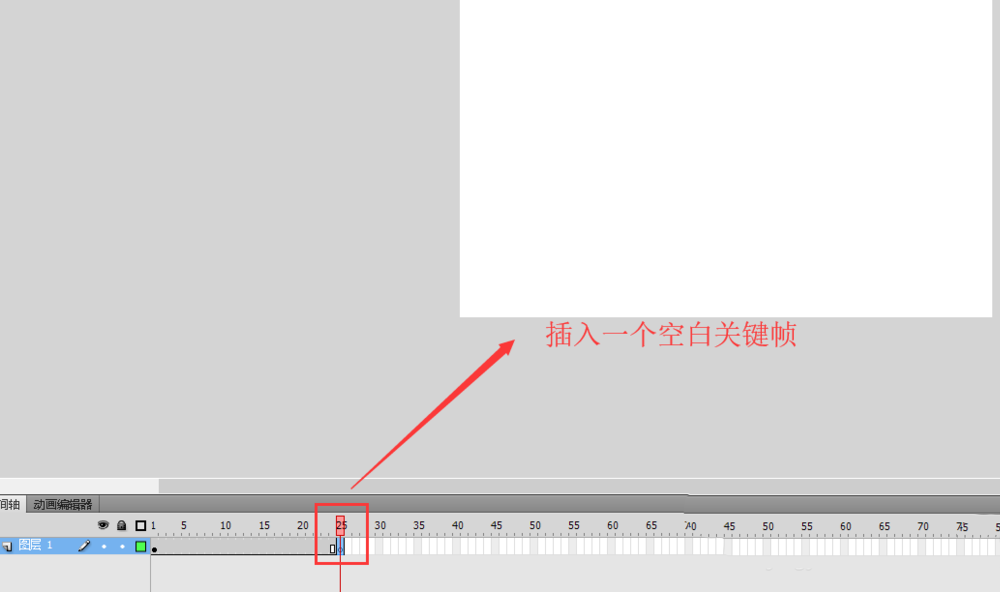4、將鼠標選中時間軸的第25幀上,然后按快捷鍵F7插入一個空白關鍵幀。