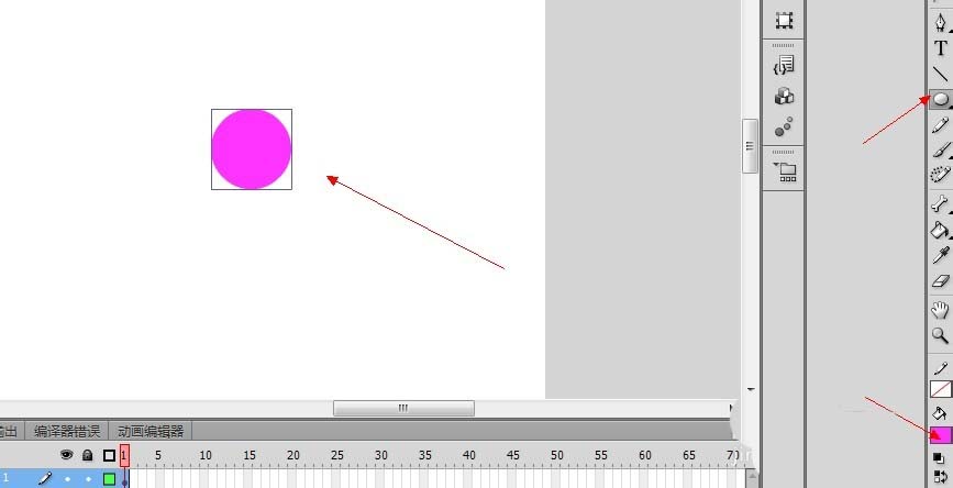 2、設置填充色為粉色,然后使用圓形工具在場景中繪制一個圓形。