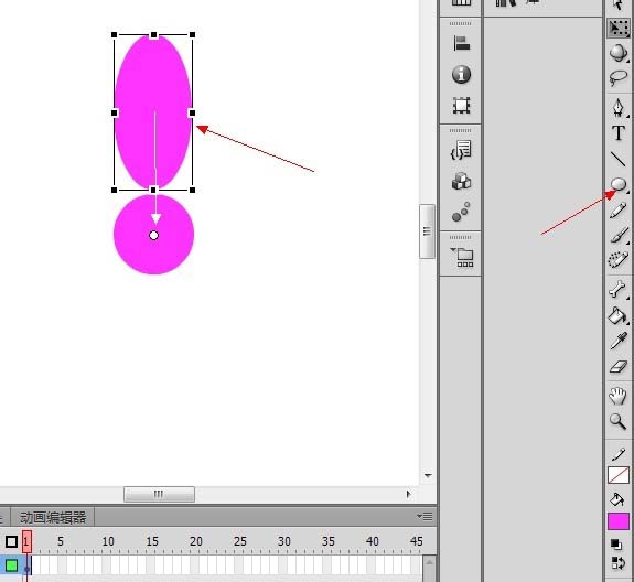 3、使用圓形工具在場景再繪制一個橢圓形,如圖,按Q鍵,將其中心調整到下面的圓的中心處。