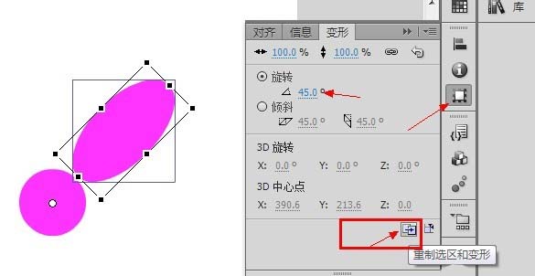 4、在工具面板上選擇變形工具,在旋轉參數中輸入45度,然后點擊下面的復制按鈕。
