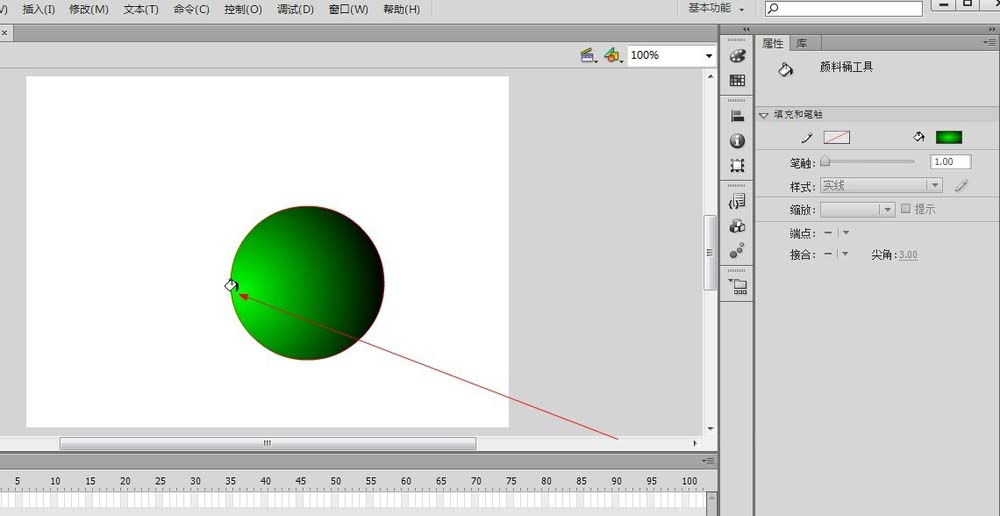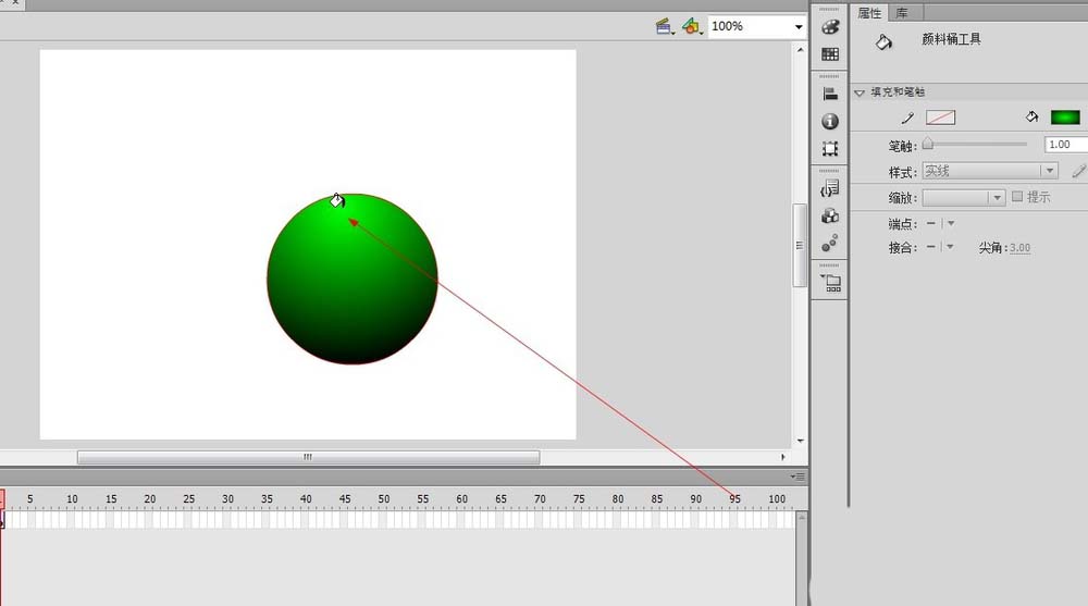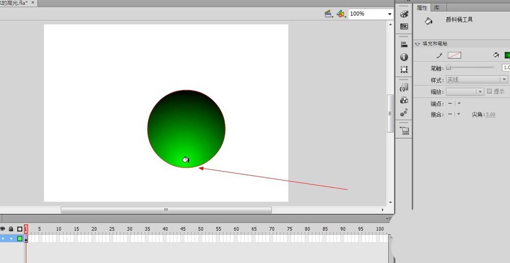7、如圖所示,我們在用顏料桶工具點下球體的下面,下面就會是高光部分,同樣我們再用顏料桶工具點下球體的左面,左面就會是高光部分,同樣我們再用顏料桶工具點下球體的右面,右面就會是高光部分。