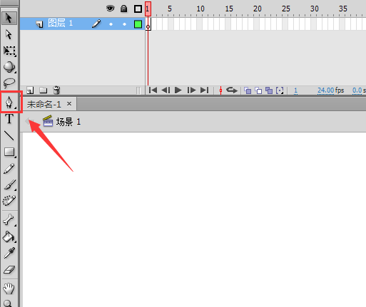 2、打開flash之后在工具箱內(nèi)找到鋼筆工具,如圖所示: