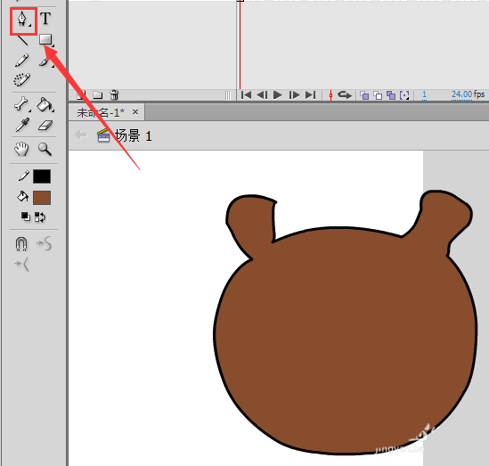 3、點擊鋼筆工具,在舞臺上繪制一個圖形作為頭部圖形,如圖所示: