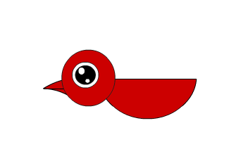 6、畫一個三角形,并用選擇工具把它變成圖中的樣子。放在合適的位置作為小鳥的嘴巴。