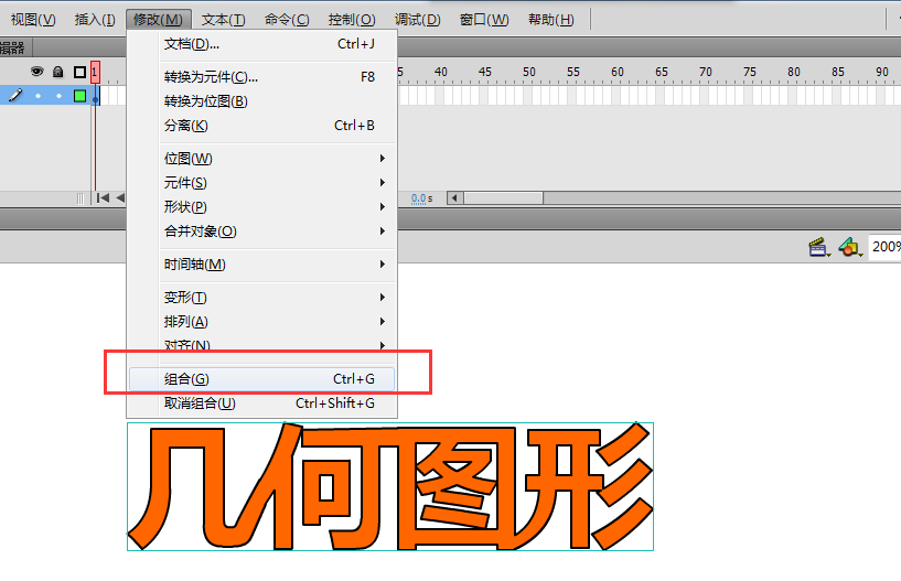6、最后拖動鼠標選中所有打散的文字形狀,執行修改中的組合命令,對當前的文字組合對象。移動位置到合適位置,一個連體字標題效果完成。