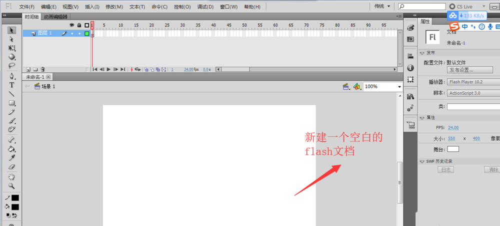 1、打開flash軟件,軟件版本建議使用CS系列以上版本,然后選擇新建一個空白的flash文檔。
