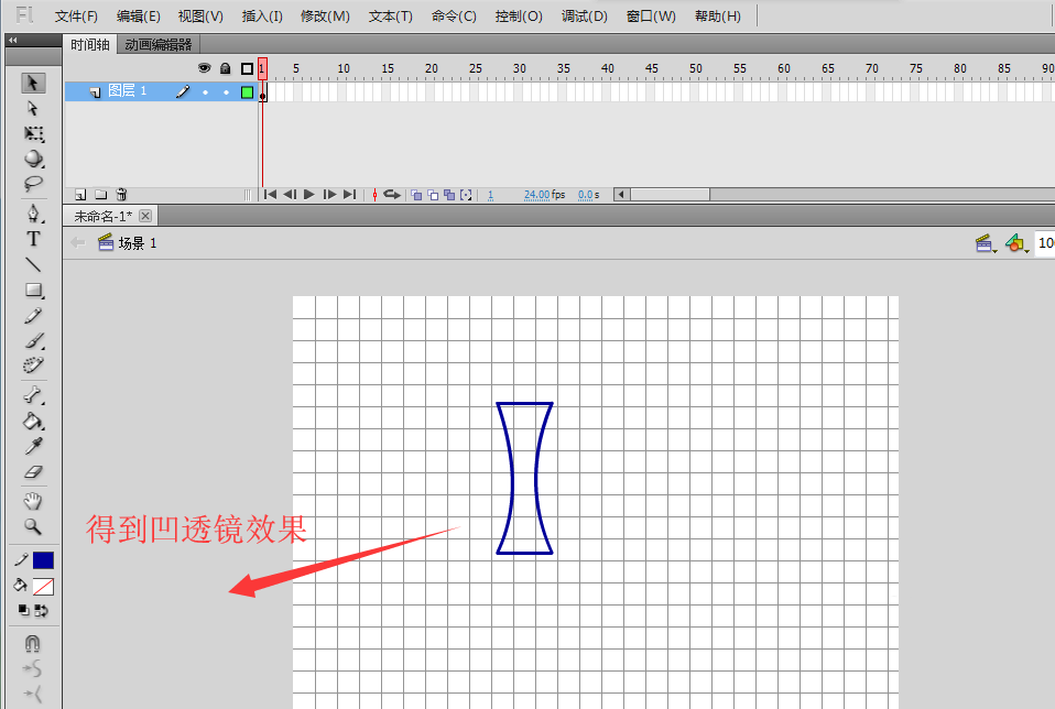 flash中想要繪制一個凹透鏡,該怎么繪制這個圖形嗯?下面我們就來看看詳細的教程。