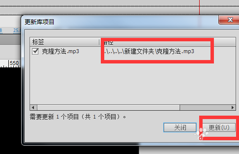 5、在彈出的框里點擊更新。那么時間軸上的聲音也就替換掉了。