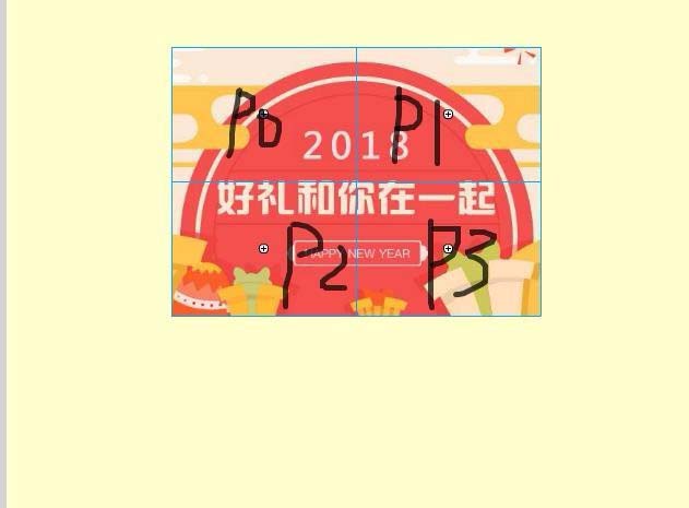3、畫一個和這個圖片一樣大小的線框,并進行劃分,可分為3x3,4x4或其它,為了方便,我們分成四塊。畫完后CTRL+B就可以打散了。