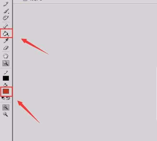 7、繪制好籃球之后,我們再在工具箱內找到顏料桶工具,設置顏色為棕紅色,如圖所示: