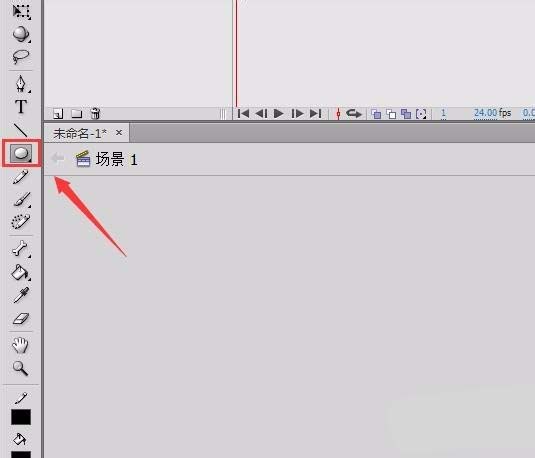 2、打開flash之后我們在工具箱內找到橢圓形工具,如圖所示: