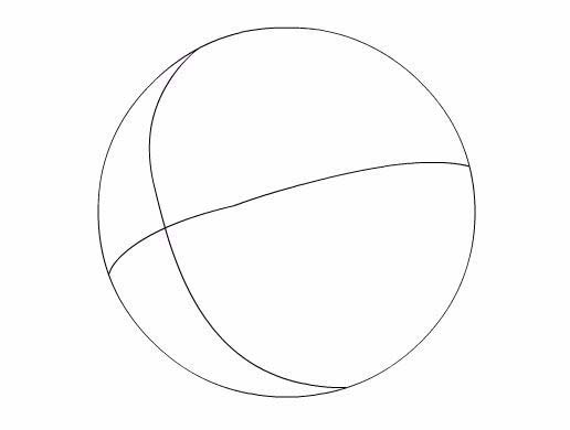 5、使用鋼筆工具繪制出籃球上的兩條主線,如圖所示: