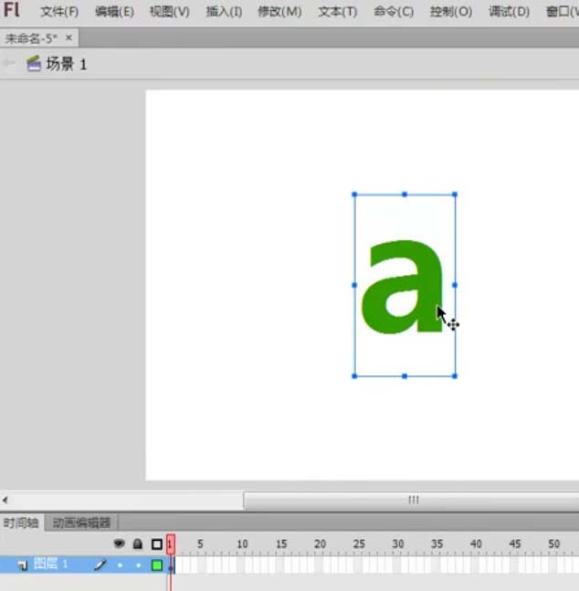 1、首先在第一幀的地方寫一個字母,如下圖所示