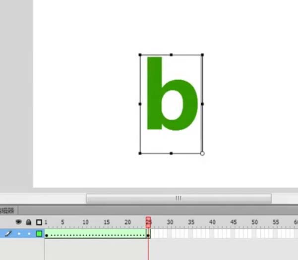 4、然后在25幀的地方在插入一個關鍵幀,如下圖所示