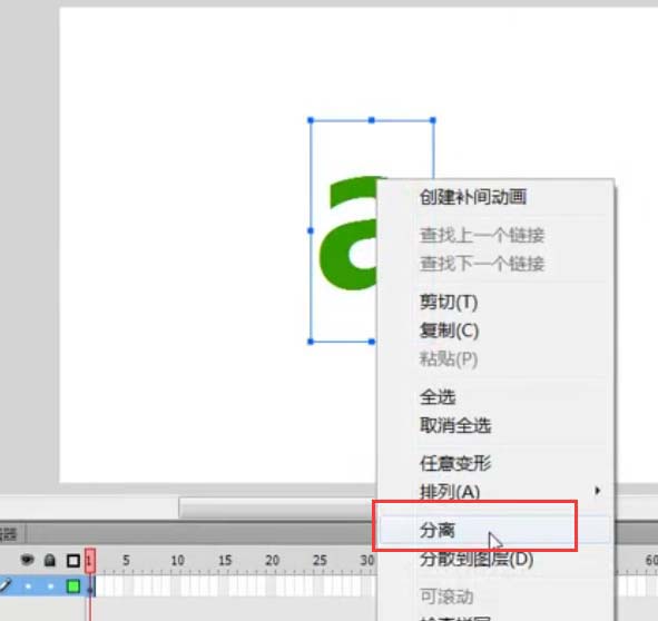 6、最后繼續選擇字母,右鍵單擊,在下拉菜單中選擇分離選項,如下圖所示