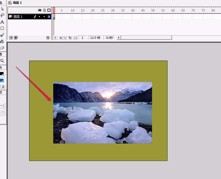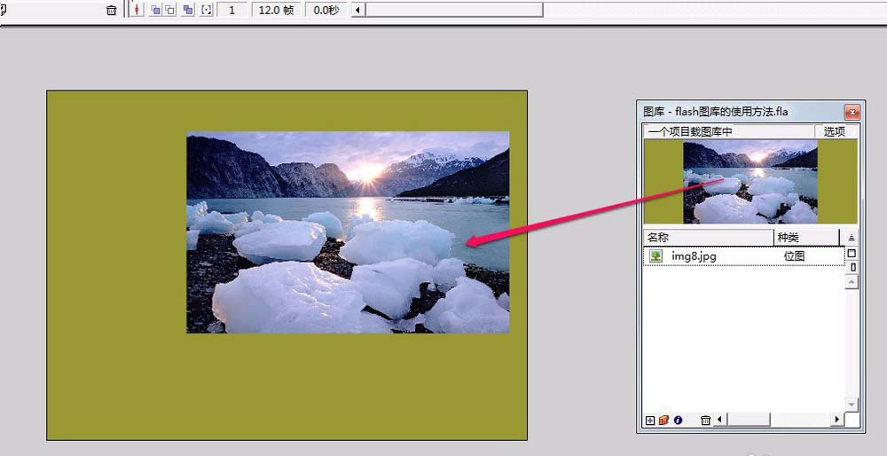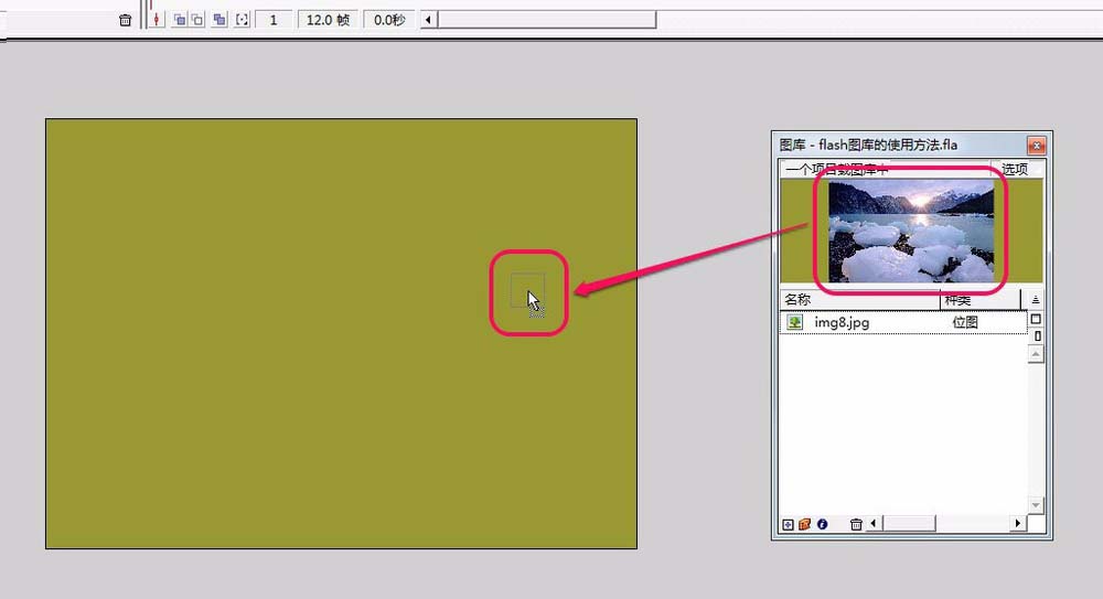 7、要想使用圖片,用鼠標把圖片從縮略圖位置拖拽到舞臺上面就可以了。