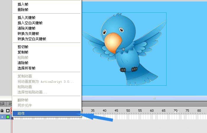 7、然后,鼠標選擇圖形,在時間軸上,右鍵單擊選擇【動作】,如下圖所示。