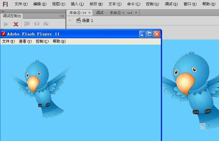 9、最后,通過測試,可以看到輸出的圖形,通過對圖形使用實例名稱,控制圖形的長度和寬度的輸出了,對比原圖可看到不同的效果,如下圖所示。在制作Flash游戲中,會經常改變圖形的長度和寬度來顯示,喜歡制作動畫的朋友們也來做做吧。