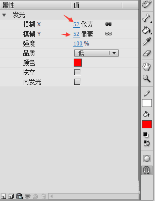 6、濾鏡,在右側(cè)下角中,點(diǎn)擊添加濾鏡圖標(biāo),選擇發(fā)光。然后模糊X設(shè)置為52像素,模糊Y設(shè)置為52像素,太陽(yáng)就會(huì)有模糊發(fā)光效果,就此成型。