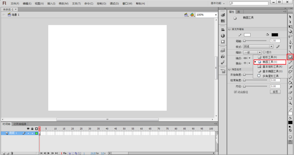 3、橢圓形工具,點(diǎn)擊右側(cè)的圖標(biāo)中的矩形工具,下拉窗口中點(diǎn)擊橢圓工具,因?yàn)樘?yáng)是橢圓形。