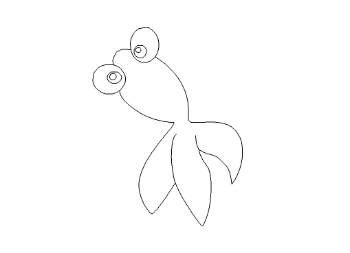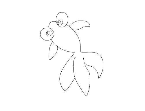 4、在身體的下面再畫出小金魚的尾巴,如圖所示: