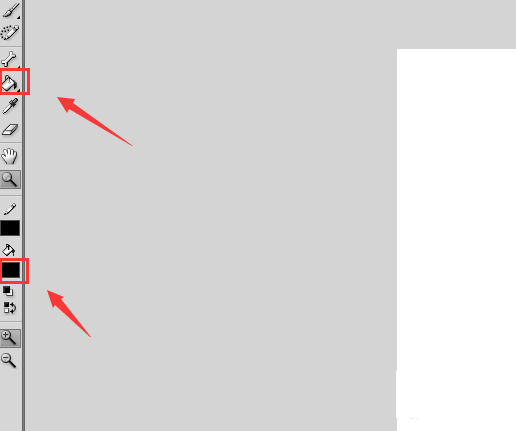 6、在工具箱內找到顏料桶工具,然后設置填充色為黑色,如圖所示:
