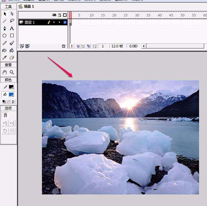 2、導入一張圖片到舞臺上面。
