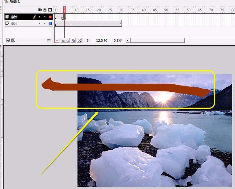 8、在第5幀繪制擦除效果圖。