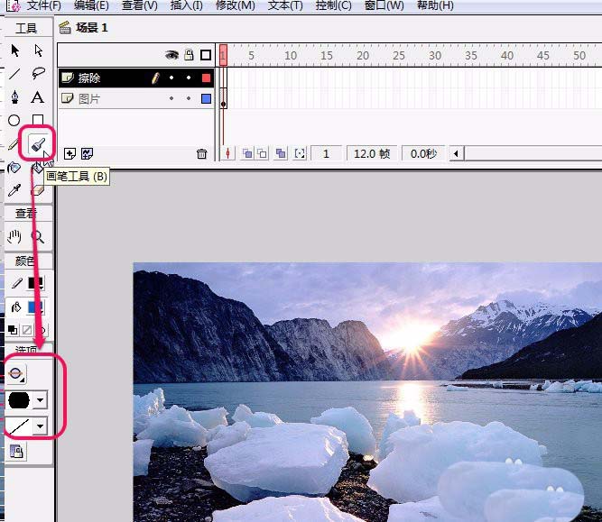 6、在“擦除”圖層第1幀使用畫筆工具畫出如圖所示的圖形。