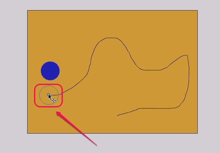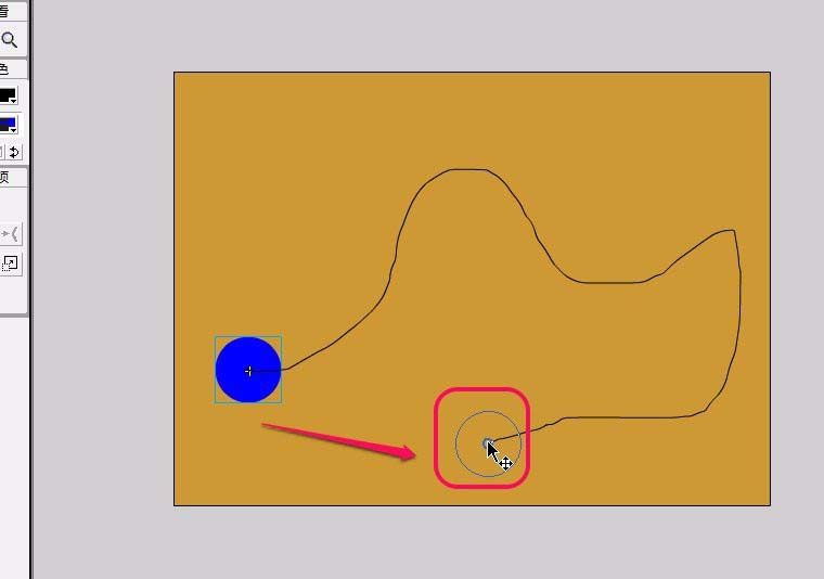 11、用鼠標拖拽圓形到曲線的另一個端點,圓形的中心點要和端點重合。