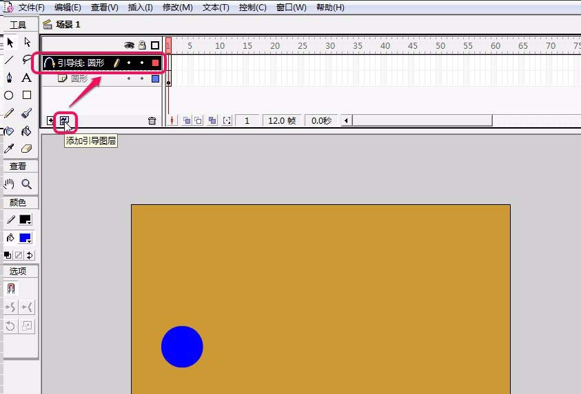 4、單擊“添加引導圖層”按鈕,新建一個“引導線:圓形”圖層。