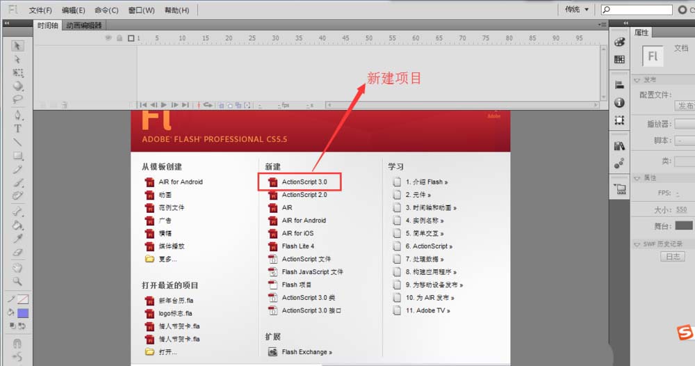 1、首先電腦里要安裝有flash的軟件,找到并打開該軟件,選擇新建一個flash動畫項目。