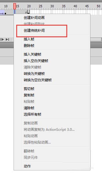 7、將鼠標選中第一幀與第十幀之間的任意一幀,然后右鍵選擇創建傳統補間動畫,同樣的在第十幀與第二十幀之間也右鍵創建傳統補間動畫?;剀囶A覽整個動畫效果,一個變色的動畫效果就制作完成。