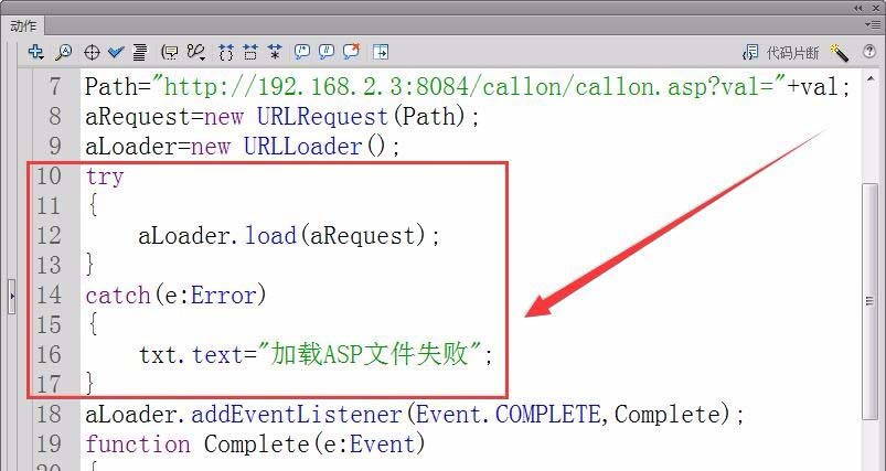 11、用try函數嘗試訪問ASP網頁,如果失敗顯示“加載ASP文件失敗”。