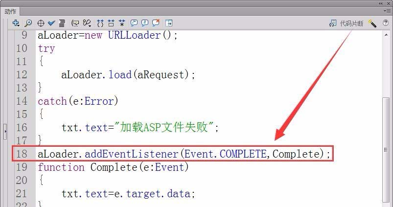12、注冊實例aLoader的complete事件的偵聽器,接收者函數為Complete。