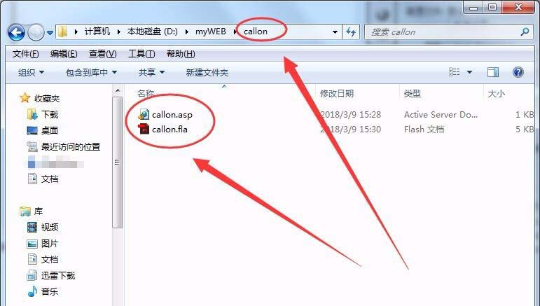 2、新建文件夾callon,在文件夾中新建網頁文件callon.asp和Flash文件callon.fla。