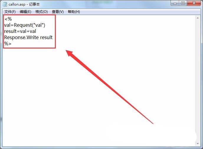 3、在callon.asp文件中,書寫簡單代碼,實現值val的和并輸出。