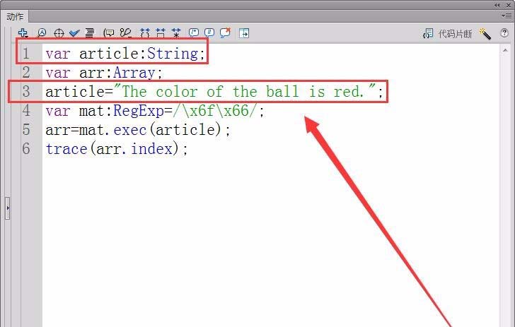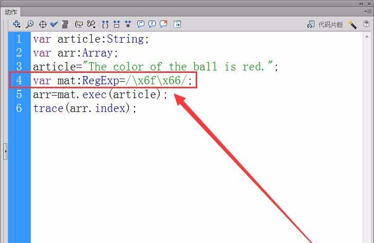 5、然后,用ASCII碼表示字符,來匹配文章。定義一個字符串變量flash,賦值一篇英文文章。