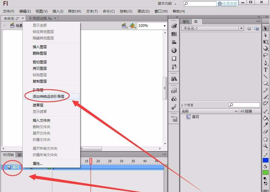 9、音符圖層上右擊,選擇添加傳統運動引導層。