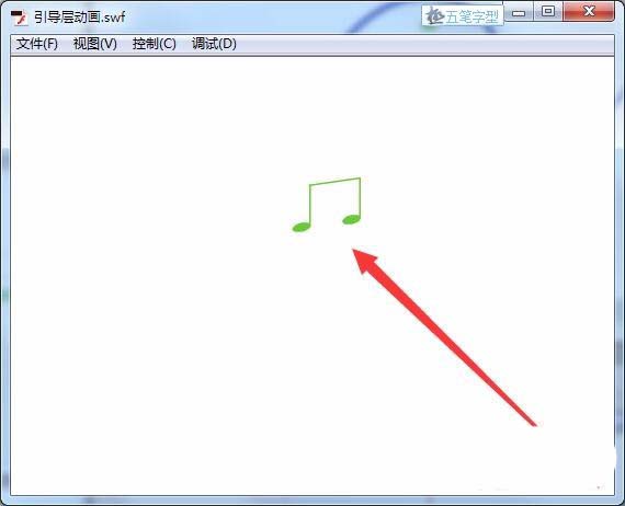 13、測試動畫,音符沿著繪制的曲線,按照引導層運動起來了。