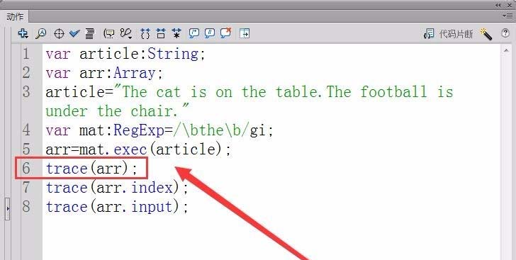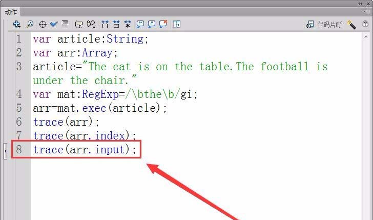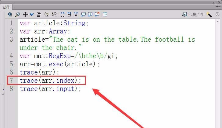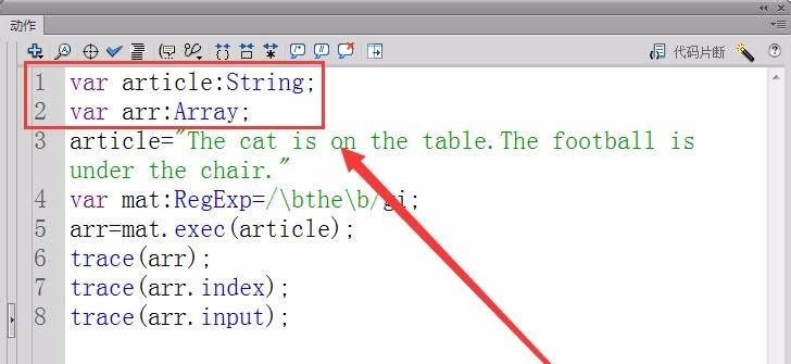 4、用正則表達式匹配文章flash,將結果保存在變量arr中。